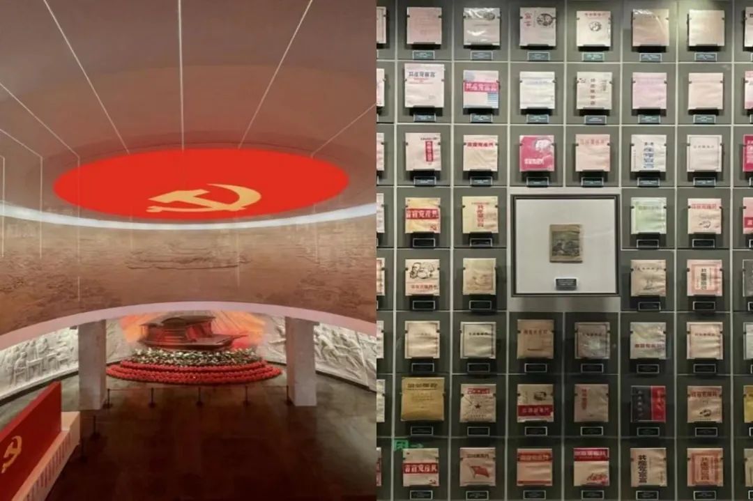 ▲紀(jì)念館內(nèi),黨徽高懸,敬畏之心悠然而生